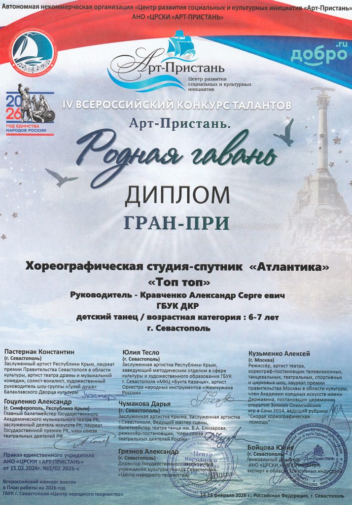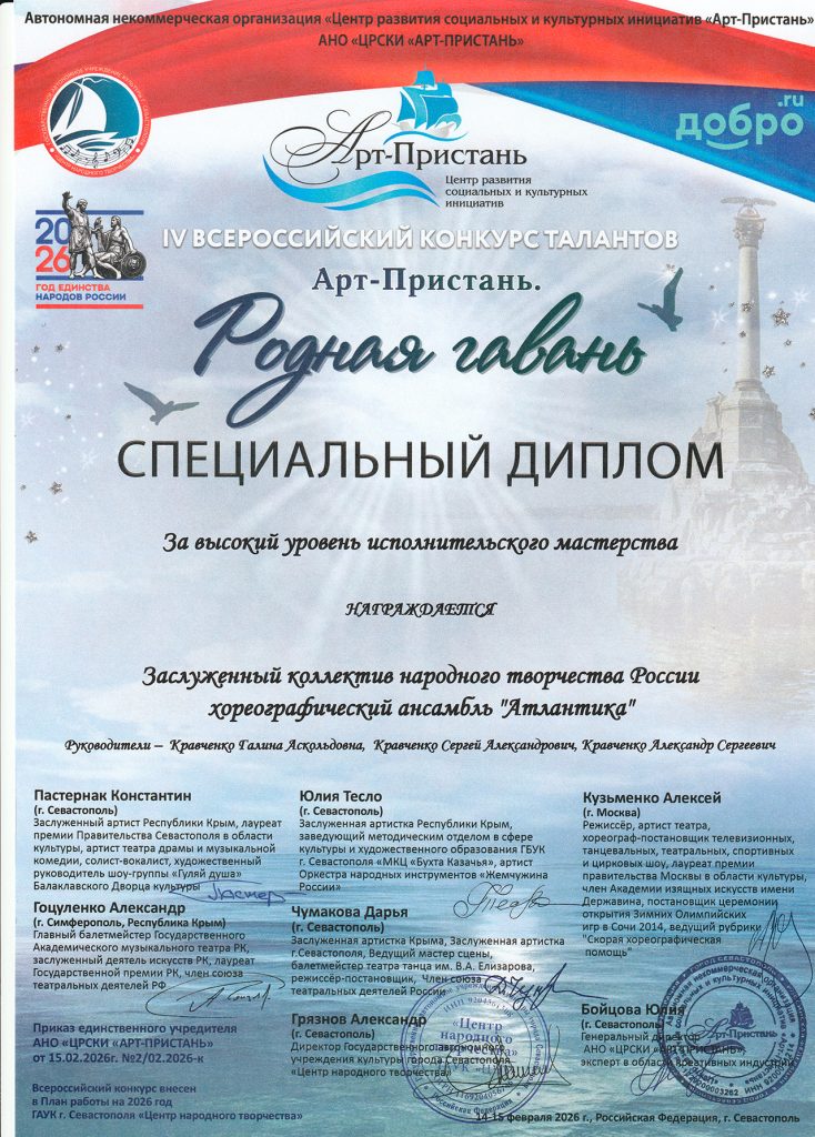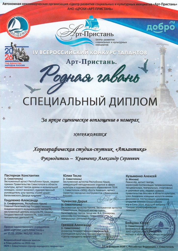 Танцевальные композиции в  исполнении  воспитанников  «Атлантики» были отмечены  Специальным дипломом жюри  «За высокий уровень исполнительского мастерства». 16 номеров отмечены Дипломами лауреатов 1 степени! Хореографическая студия-спутник «Атлантика» под руководством Сергея Александровича Кравченко  награждена Специальным дипломом  «За яркое сценическое воплощение».  5  номеров  вокального ансамбля «Маленький принц» отмечены Дипломами лауреатов 1 степени!