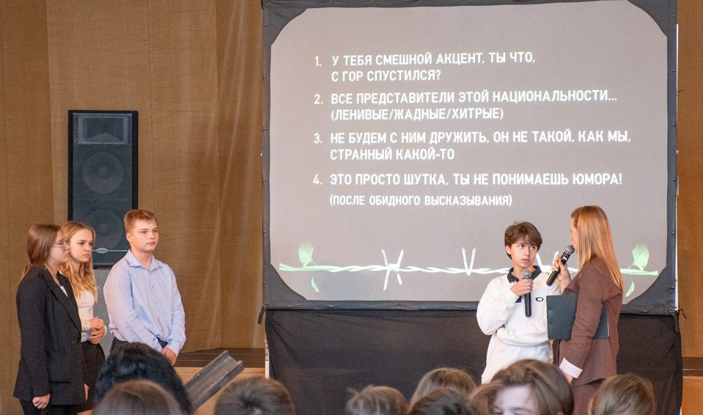 Началась встреча  с  дискуссии  с  учащимися 7-8 классов школы №58 о  хрупкости мира, о причинах ненависти и о том, как важно сохранять человечность в современном мире. С помощью  медиапроекта «Без срока давности…»  школьники ознакомились  с фактами зарождения и развития нацизма, с различными формами его проявления в прошлом и в наши дни. Особое впечатление на ребят произвёл интерактив «Антивирус: ваша личная защита от ненависти» и рубрика «Аллея Праведников», где рассказывали о людях, проявивших мужество и сострадание в годы Великой Отечественной войны, а также  о героизме и милосердии  наших современников.