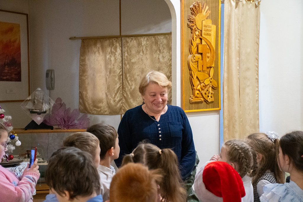 Ребята с неподдельным интересом слушали рассказы о морских традициях и приметах, связанных с Новым годом. Они узнали, что рыбаки, уходящие в море на долгое время, часто брали с собой маленькие елочки, украшенные ракушками и блестящими кусочками слюды, чтобы создать атмосферу праздника вдали от дома. Эти символические деревца напоминали им о семье и доме.»Посетили» ребята и  радиорубку корабля, откуда отправлялись  праздничные радиограммы  морякам, согревая их сердца вдали от родных берегов.Методист  музея Галина Сопина также ознакомила юных посетителей с процессом создания необычного дерева  из  морской соли. Все желающие  получили возможность самостоятельно украсить соляную  ёлку.