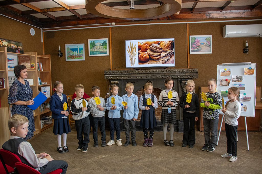 В ходе мероприятия первоклассники школы №15 узнали о том, как зерно превращается в душистый каравай, о  хлеборобах, мельниках и пекарях. С помощью презентации ребята увидели, как выращивали хлеб на Руси и сколько труда вкладывают в его производство сегодня. Вспомнили пословицы, поговорки, стихи  и сказки о хлебе. Особый акцент был сделан на суровые годы Великой Отечественной войны. Методист Тамара Глущенко рассказала о блокадном хлебе Ленинграда. Полученные  знания ребята продемонстрировали, отвечая на вопросы  викторины «О хлебе нашем». Также в ходе познавательной программы  прозвучали  русские  народные  обрядовые песни  в исполнении  юных артистов ансамбля «Забавушка».