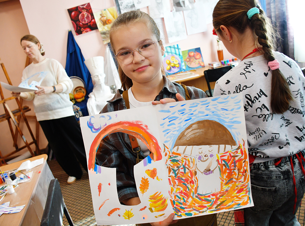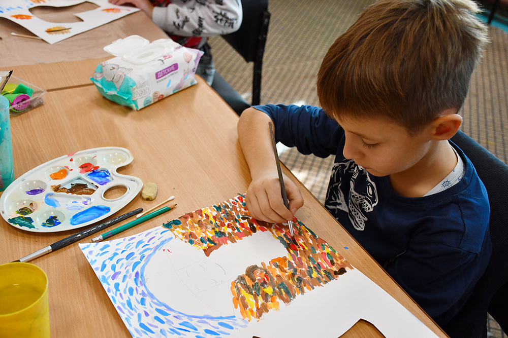 1 ноября  Анна Смолова, руководитель студии изобразительного искусства «Палитра», провела для начинающих художников мастер-класс «Щедрые дары осени».