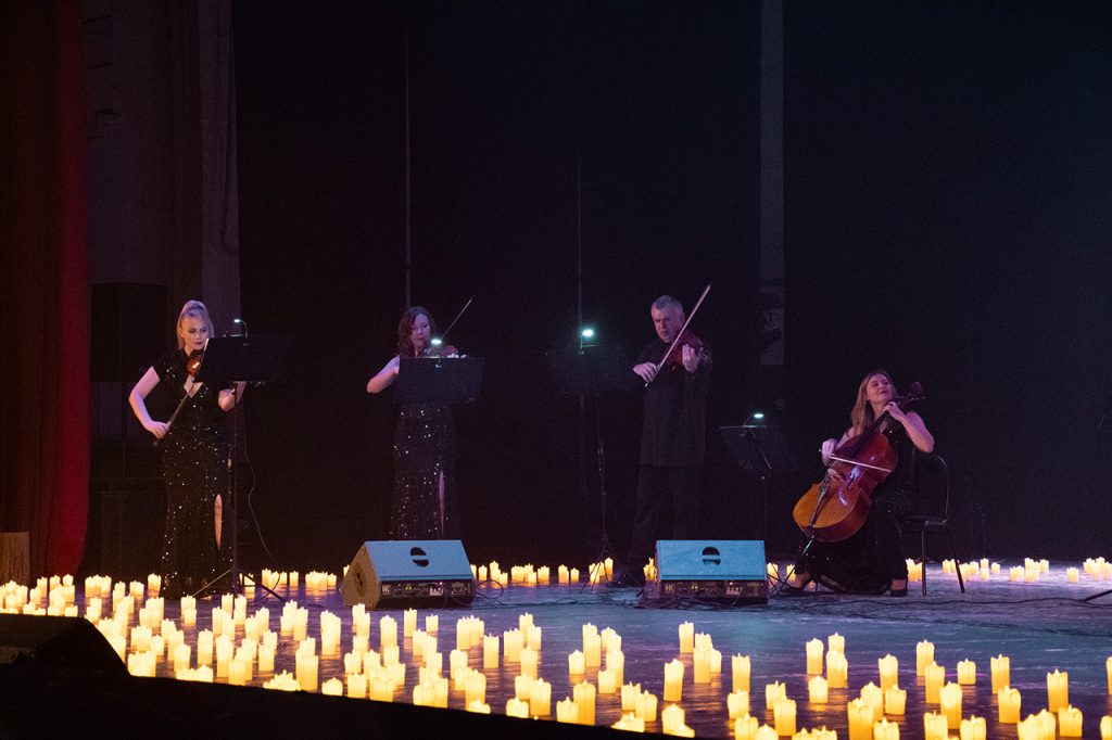 Знакомые мелодии обрели новое звучание — под сводами зала они сочетались с живым светом десятков свечей, создавая необыкновенный контраст силы и лирики.
